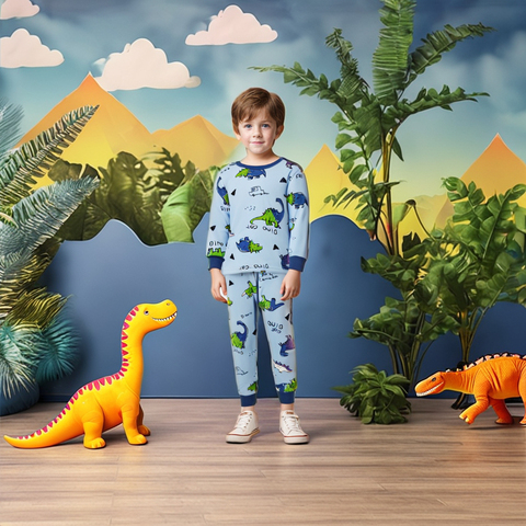 Nhật Ký Cộng Với Mềm Mại Thoải Mái Bé Ngủ Quần Áo Mùa Thu/Mùa Đông Cô Gái Quần Áo Bộ Màu Xanh Dưới Khủng Long In Dày Ấm Cashmere