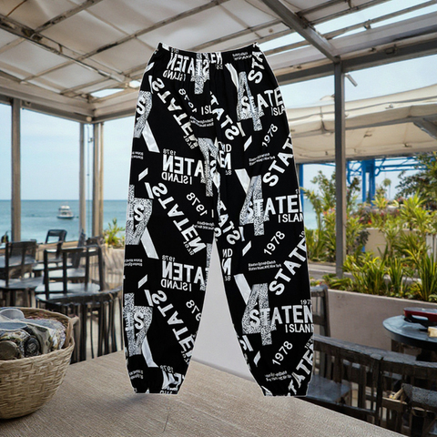Dagboek Plus Heren Casual Sneldrogende Broek Lente/Zomer Zwart Wit Digitale Letterprint Cool Stof Tropische Vakantiestijl