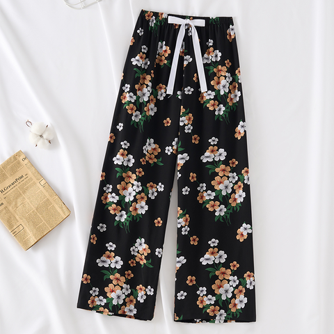 Satijnen Harem Enkelbroek Met Bladgoud Voor Dames Voor De Lente Zomer Losse Ademende Sneldrogende Pyjama Tropische Vrijetijdskleding